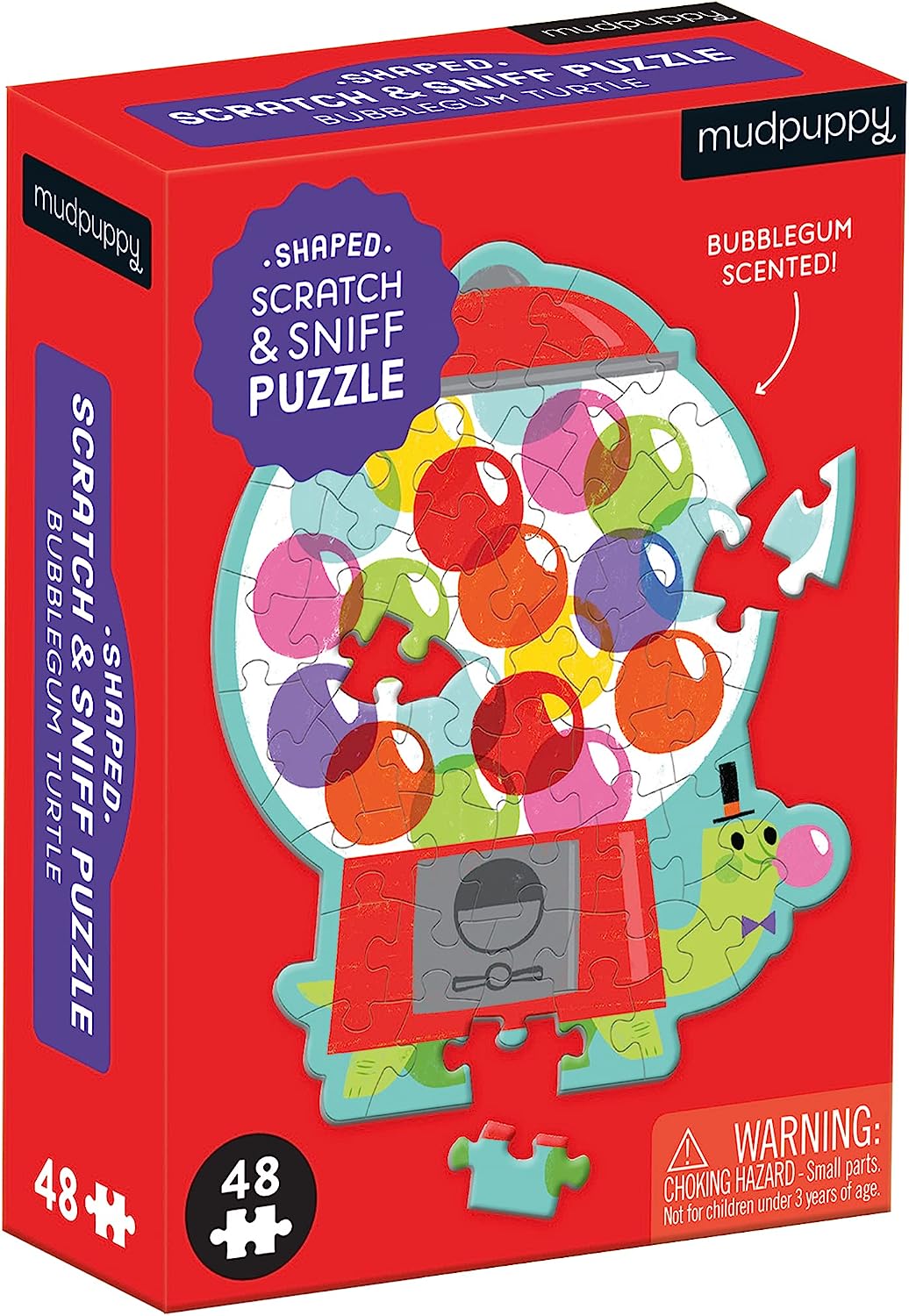 - 48-PIECE PUZZLE – The Bubblegum Turtle 48-Piece Scratch and Sniff Mini Shaped Puzzle from Mudpuppy is perfect for children ages 4 and up to complete on their own. Uniquely die-cut in the shape of turtle, this colorful puzzle is sure to amuse and excite all puzzlers!