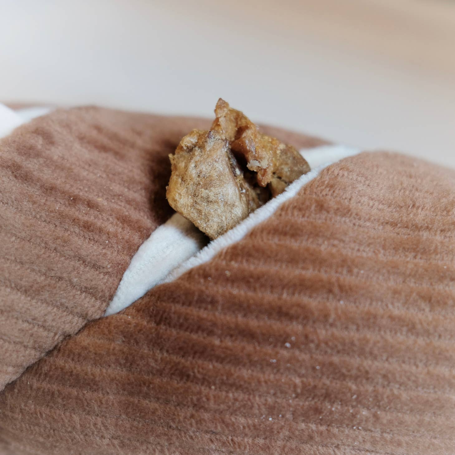 Our new BAGUETTE is an oversized enrichment play object perfect for M+ size pets. (Warning, this one will also make an exceptional headrest accidentally.) It also comes with a crinkly paper bag for you to store or hide even more treats in!