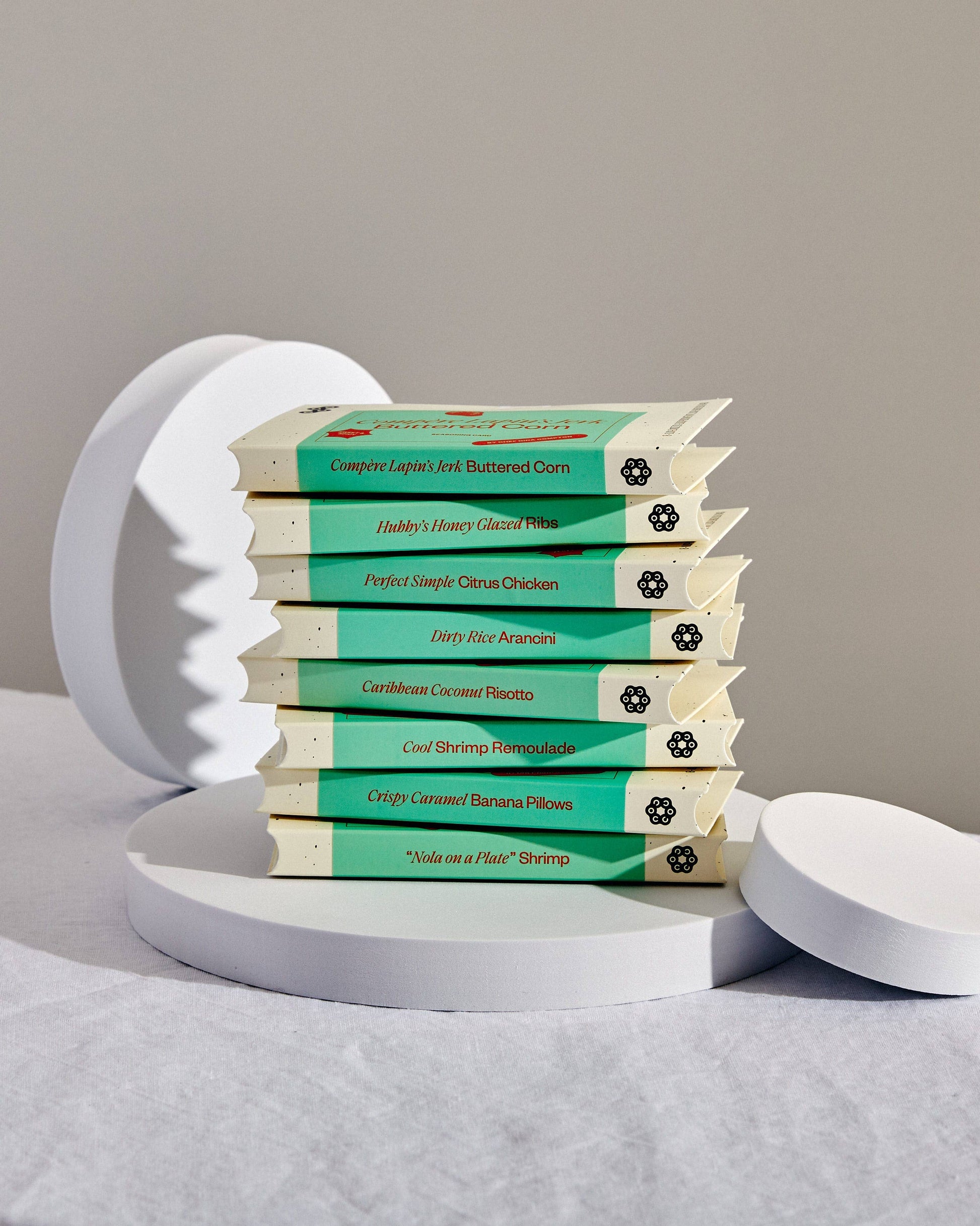 Throw a themed dinner party that covers all the courses or add a Creole kick to your midweek menu. Simple, soulful cooking with delightfully deep flavor and a splash of spice. The Caribbean-Creole Bistro deck by Chef Nina Compton includes 8 recipe seasoning cards for: "Nola on a Plate" Shrimp, Compere Lapin's Jerk Buttered Corn, Cool Shrimp Remoulade, Crispy Caramel Banana Pillows, Dirty Rice Arancini, Hubby's Honey Glazed Ribs, Perfect Simple Citrus Chicken and Caribbean Coconut Risotto. Recipe ingredients & instructions are accessible via QR code on the back of each card.