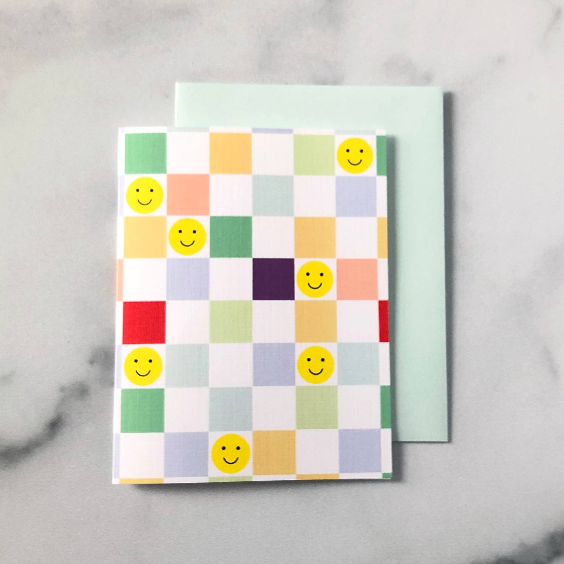 Happy happy joy joy! These folded cards are 4.25" x 5.5" (A2), printed on premium arctic white linen-textured 100lb cardstock. High-quality mint envelope with Euro flap included. Blank inside for personal message.