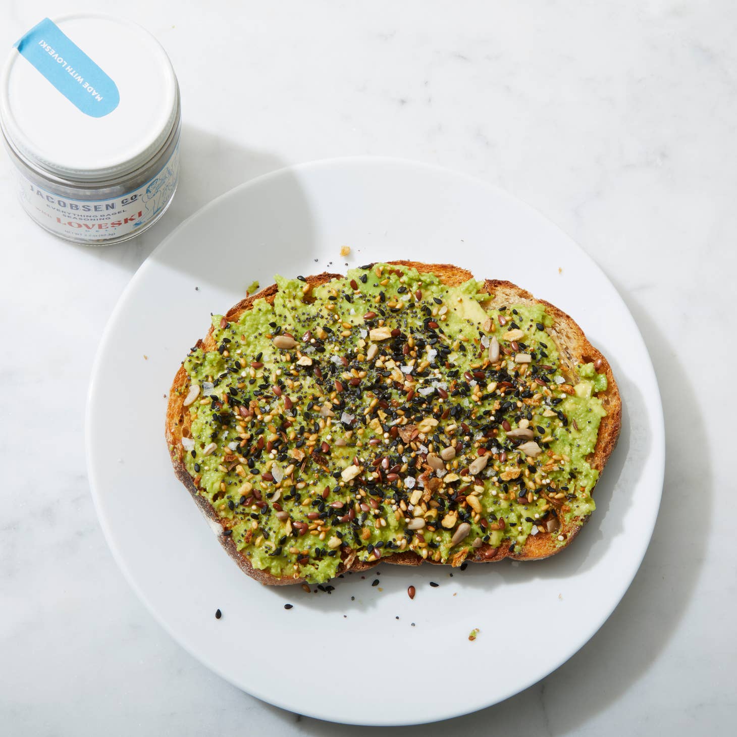 No bagel necessary. Made with Loveski, a “jew-ish” deli born out of Northern California by Christopher and Martina Kostow. The shallots and garlic are a nod to Martina’s Thai heritage, with the larger seeds providing a Californian approach. Retailing exclusively through JSC Online, our Netarts gift shop and Loveski deli About Loveski Loveski is a deli born out of Northern California by Christopher and Martina Kostow. Featuring handmade sourdough bagels, house-made pickles and other ferments, vegetables from their farm, and the best cured and smoked meats. Ingredients Sea Salt, Black Sesame Seed, Poppy Seed, Fried Garlic (Garlic, Sunflower oil), White Sesame Seed, Flax Seed, Fried Onion (Onion, Sunflower oil), Sunflower Seed, Sea Salt, Nigella Seed, Caraway Seed, Puffed Amaranth. Contains Sesame
