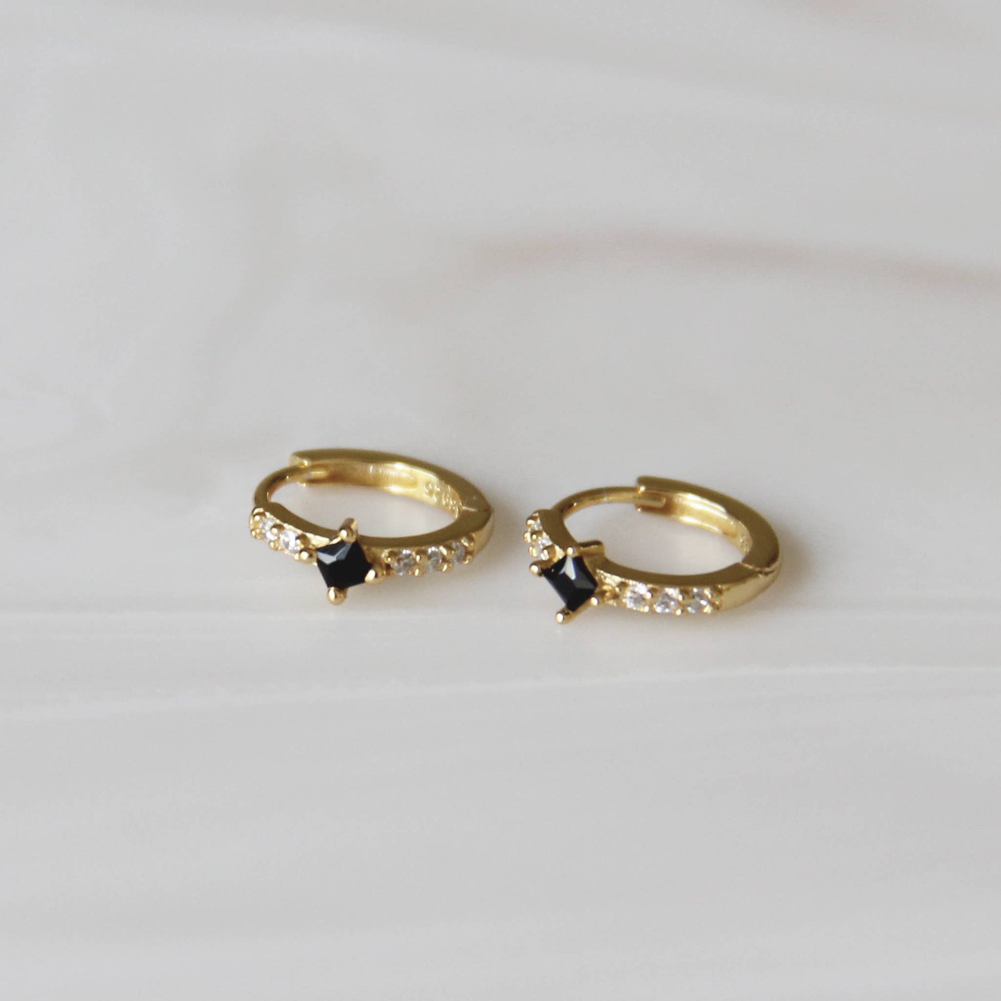 Featuring a square black cubic stone. This earring is perfect for a subtle sparkle worn alone or great layered with other pieces.