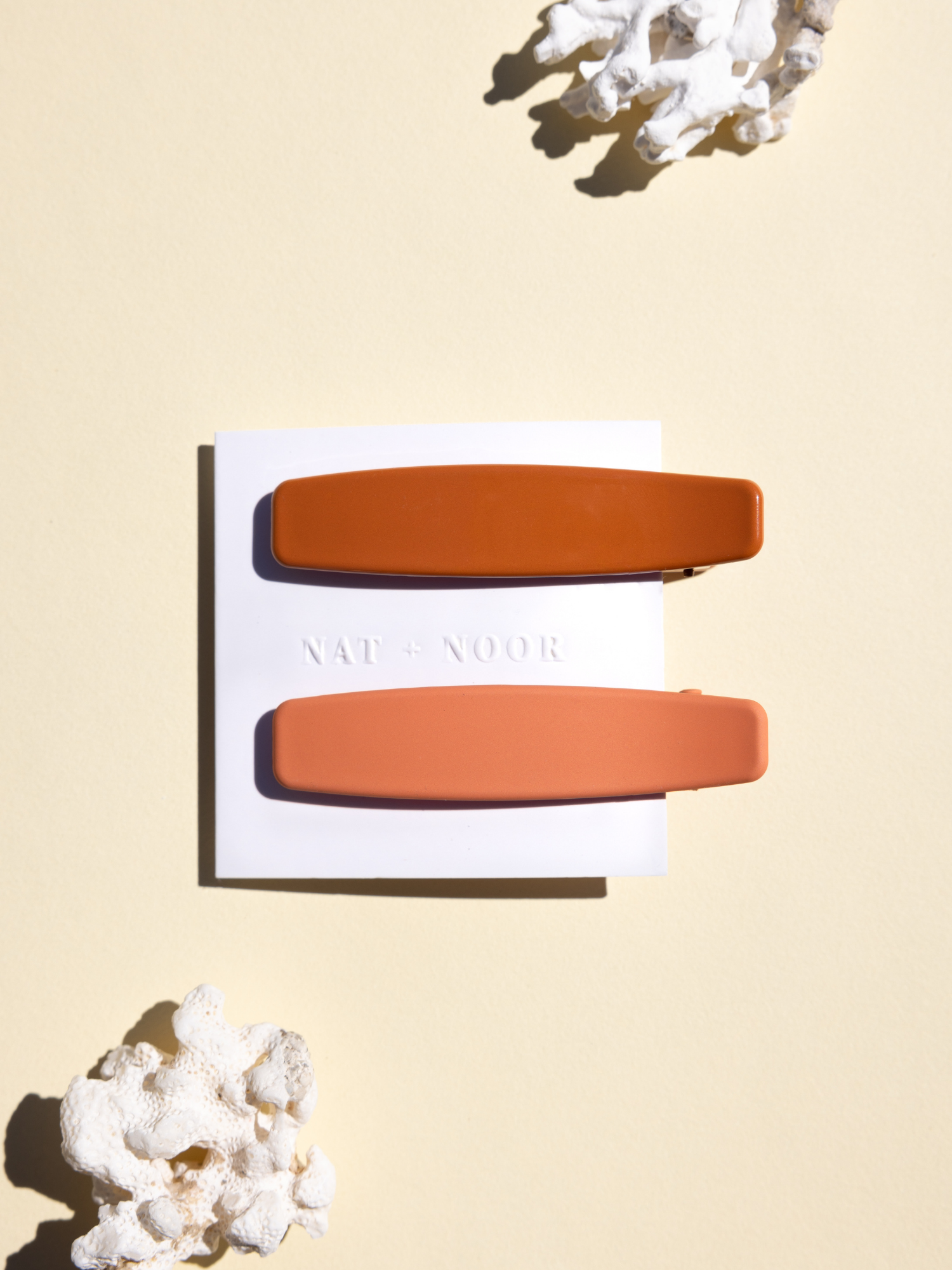 Alligator style clips in Glossy Orange and Matte Peach colors.