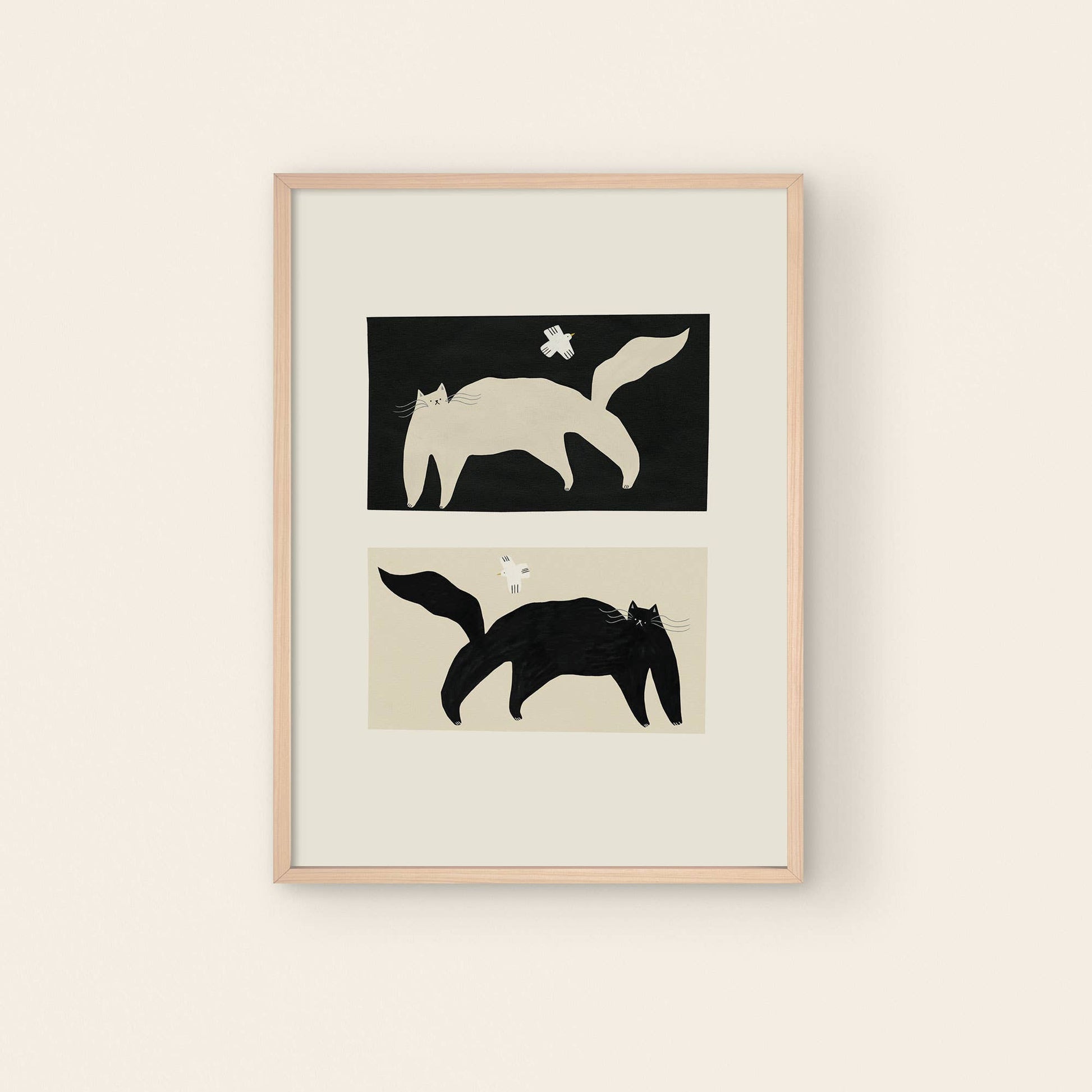 Light and dark, sunshine and shadow, yin and yang - there are positive and negative sides to everything in life, a concept beautifully depicted in this black and white giclée cat print. The monochrome piece of home decor is perfect for a nursery or office wall, making a striking addition to any room.