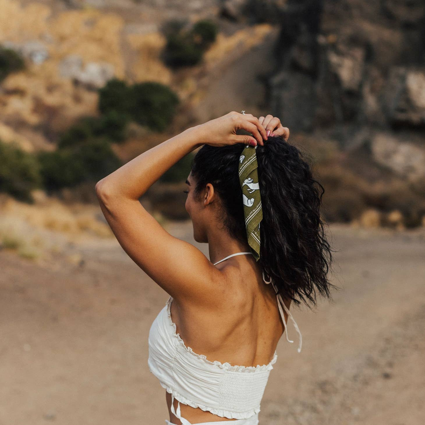 Bandanas can be used in so many different ways! Use it as a handkerchief on hikes, wear it in your hair or on your clothes to spice up an outfit, tie it around your pup's neck to make them look dashing! Have fun with it!