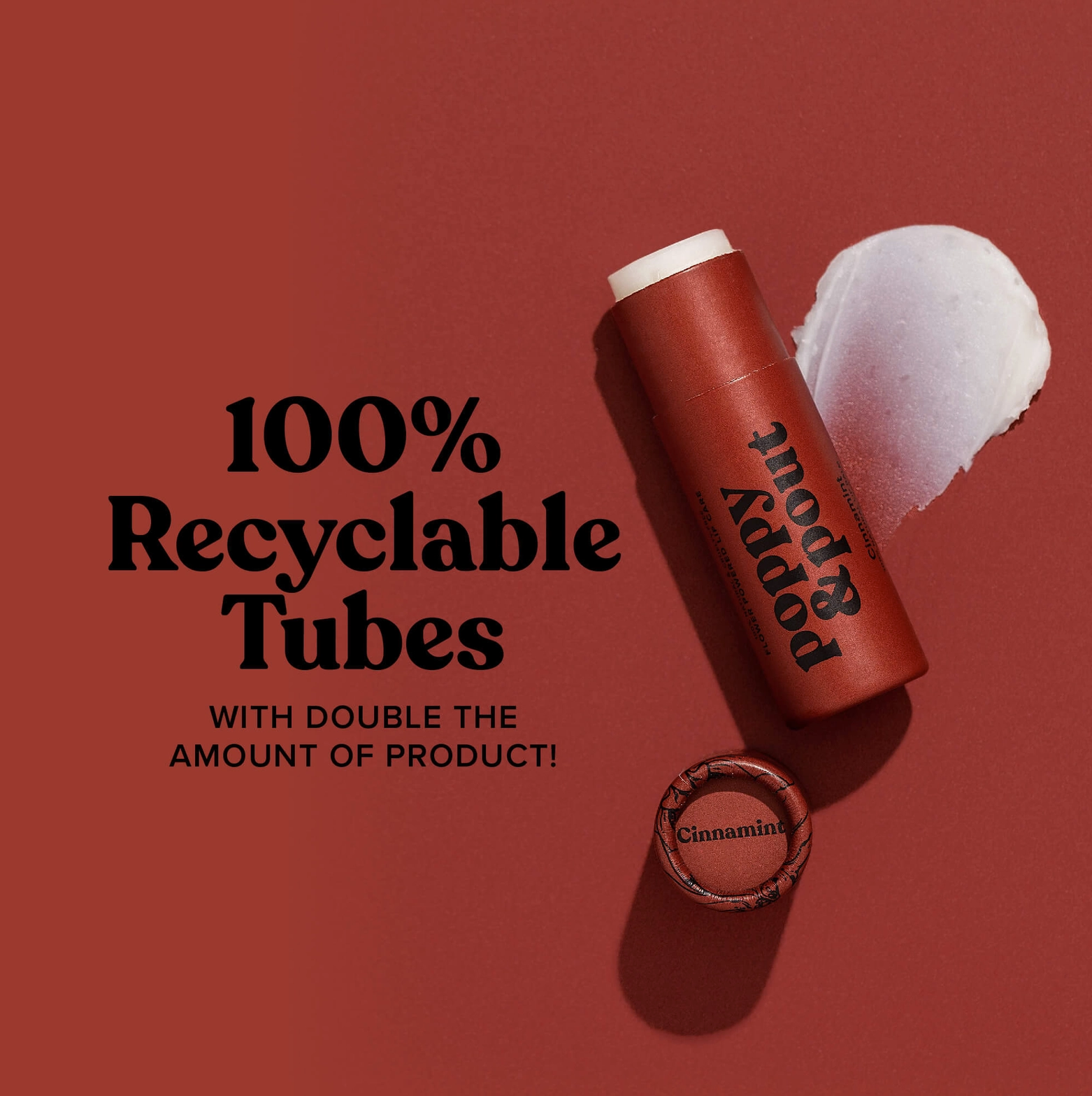 Poppy & Pout is the original flower-powered lip care brand, hand-crafting eco-friendly, hydrating lip balms for over a decade. Looking to heat things up? Our Cinnamint Lip Balm is sure to satisfy! After applying our Cinnamint Lip Balm, there is a light spicy/tingling sensation that subsides after a few moments. Cinnamon lovers will adore this product! Every Poppy & Pout lip balm is made with 100% natural ingredients and hand-poured into cardboard tubes.