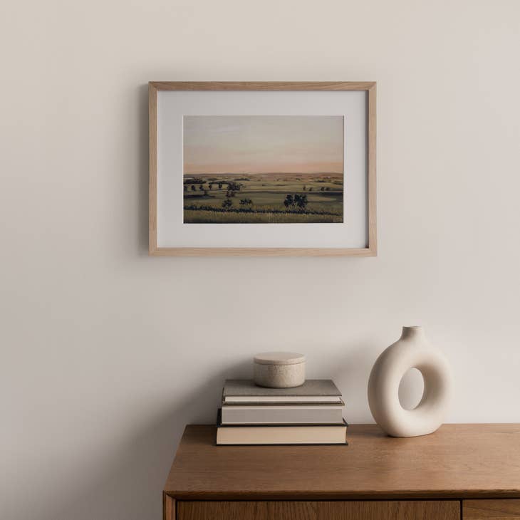 "Terracotta Sunset" is a part of the Summer Landscape Collection and is printed using a giclee large scale professional printer on heavyweight fine art quality paper. *Frame not included.